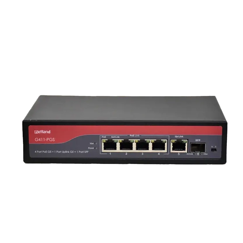 سوئیچ شبکه نت لند G411-PGS دارای 6 پورت گیگابیت است. 1 پورت SFP دارد. توان کل 78W است. بدنه فلزی دارد. این سوئیچ در رده سوئیچ های poe است. برای دستگاه هایی که از استاندارد IEEE802.3af/at پشتیبانی می کنند قابل استفاده است. سایز بسیار کوچک، پاور خارجی از ویژگی های دیگر است. این سوئیچ از تجهیزات شبکه است. تولید برند نت لند است. این برند تولید کننده ی سوئیچ های صنعتی و POE و سایر متعلقات و تجهیزات شبکه است.